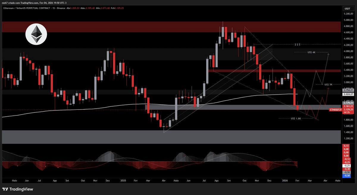 E o Ethereum buscou os US$ 2.075, níveis que não víamos há semanas, mas que serviram como um ímã para a liquidez.