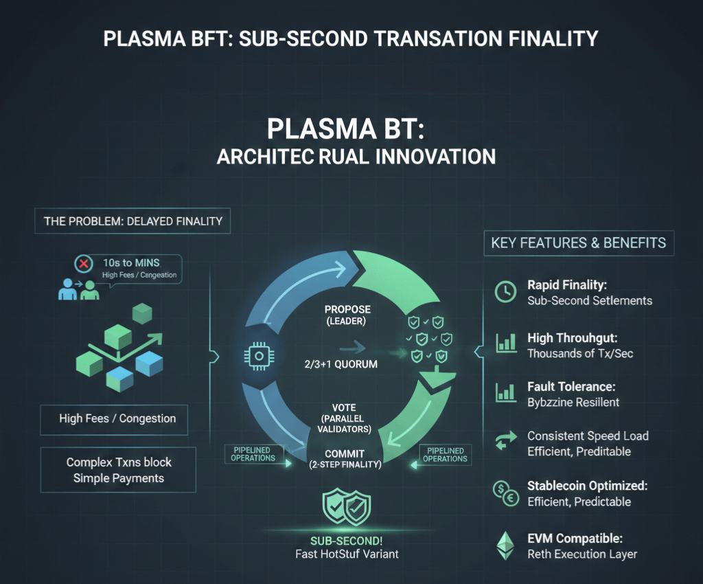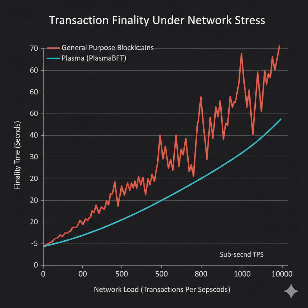 The significance of this design choice becomes clearer when considering long term dynamics under scale and stress. In a network like Plasma, built expressly for stablecoin flows, sub second finality means that even during peak usage such as a sudden influx of remittances or merchant settlements the system maintains predictable settlement times. This reliability fosters better incentives: users and developers can build applications assuming near instant irrevocability, reducing the need for off chain workarounds that introduce their own trust dependencies. Over years of operation, as transaction volumes compound, this architectural focus on low latency consensus could enhance persistence by distributing load more evenly across validators, avoiding the centralization pressures that plague slower systems where delays incentivize pooling resources. In real world usage, where network partitions or malicious actors might emerge, PlasmaBFT's Byzantine tolerance rooted in its quorum requirements ensures that finality holds without sacrificing speed, potentially making Plasma a more robust foundation for integrating with legacy financial systems that demand deterministic outcomes.