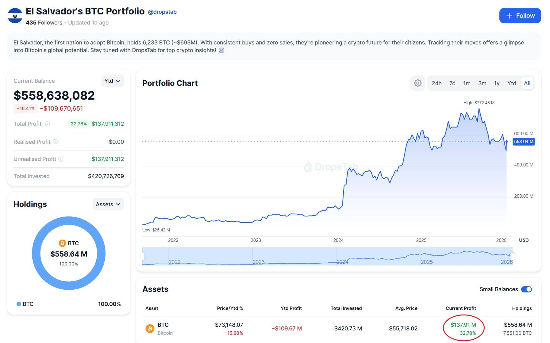 Yet even after the recent market crash, El Salvador is still sitting on about $137M in profit.
