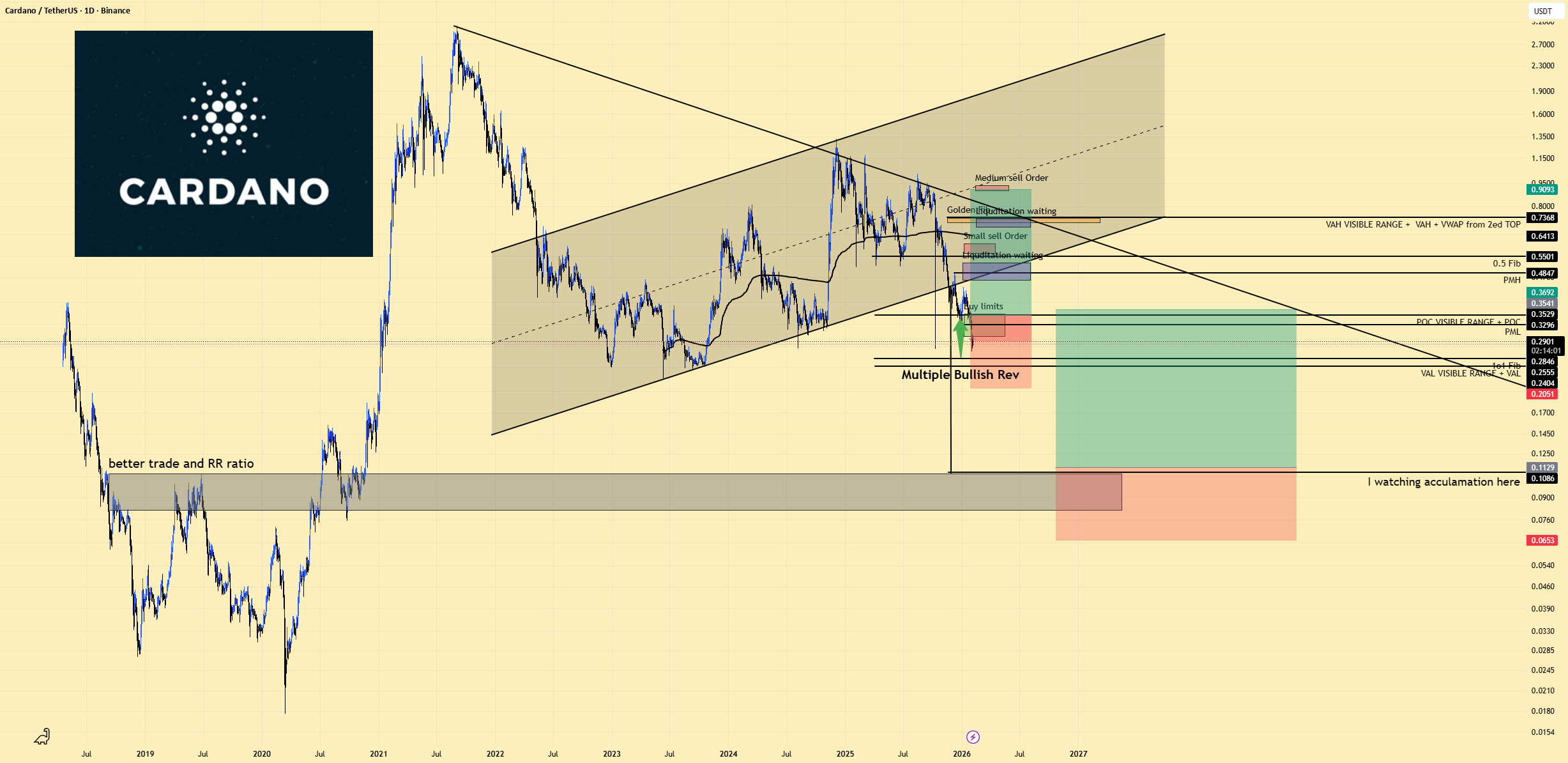 Cardano se află într-un canal ascendent mai mare, iar prețul este în prezent comprimat la un punct de decizie cheie.