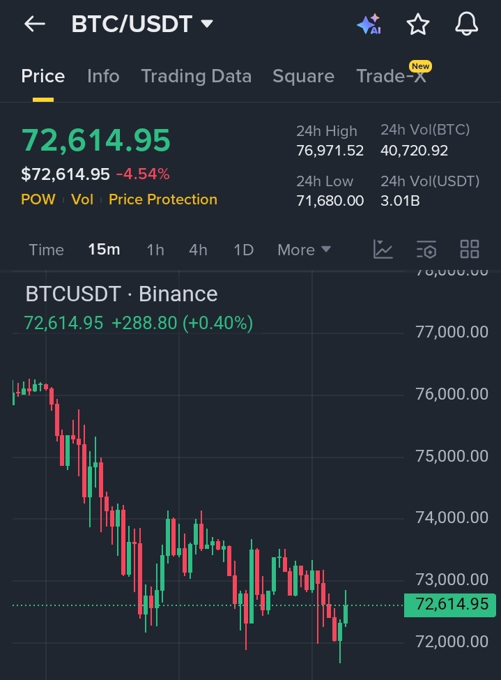 When my research in crypto market the Man, this week has been rough for all of us holding BTC. Watching it drop below $73k (even touching ~$72.8k lows) after everything felt so bullish earlier... it hurts. Liquidations everywhere, Fear & Greed at extreme fear levels (~15–17), and the whole market feels like it's bleeding out with equities and risk assets tanking too. If you're feeling frustrated or second-guessing your positions right now you're not alone. I've been there too.