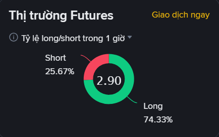 Tuy nhiên, điều đáng chú ý là trong bối cảnh tiêu cực đó, tỷ lệ Long vẫn chiếm tới 74.33%, trong khi Short chỉ ở mức 25.67%. Điều này cho thấy phần lớn nhà đầu tư vẫn đang đặt cược vào khả năng phục hồi của giá, bất chấp thị trường đang giảm mạnh.