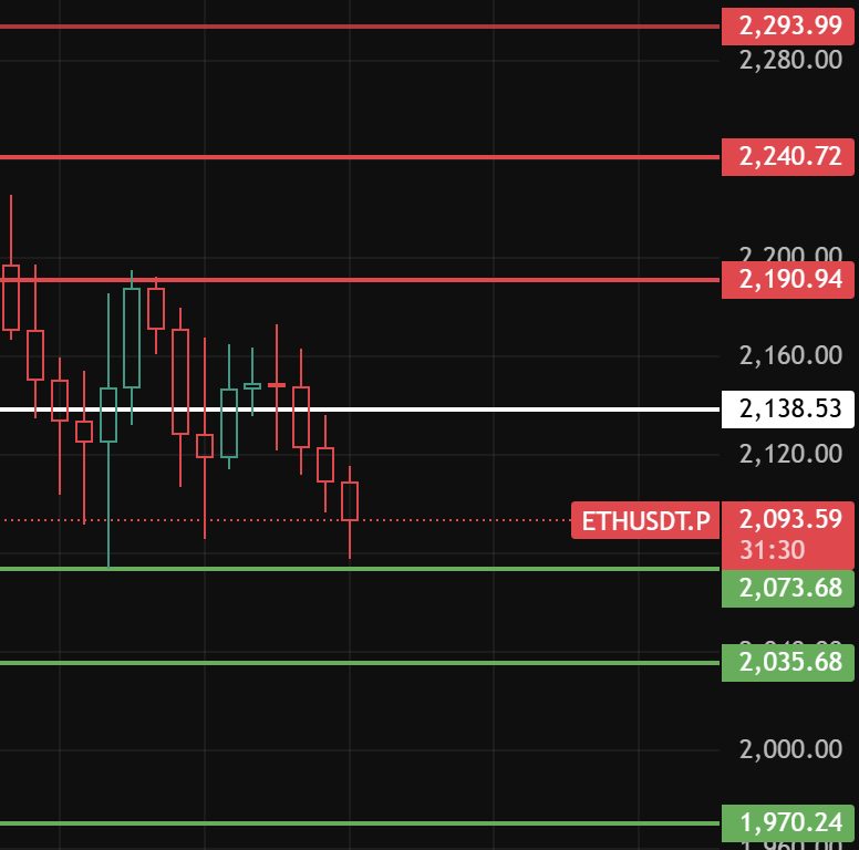 以太今天留意2138这个位置,只有站稳此位置上方1小时级别才开始反弹,上方压力位留意2190-2240-2294这几个位置附近!