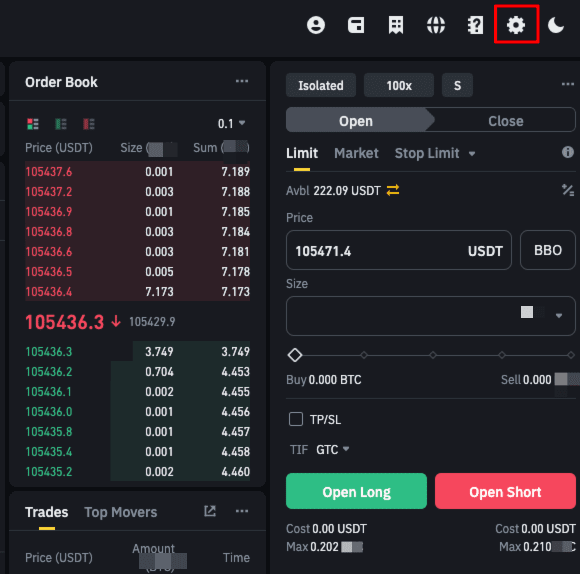 1. Open the trading interface and click [USDⓈ-M] or [COIN-M] on the top navigation bar.