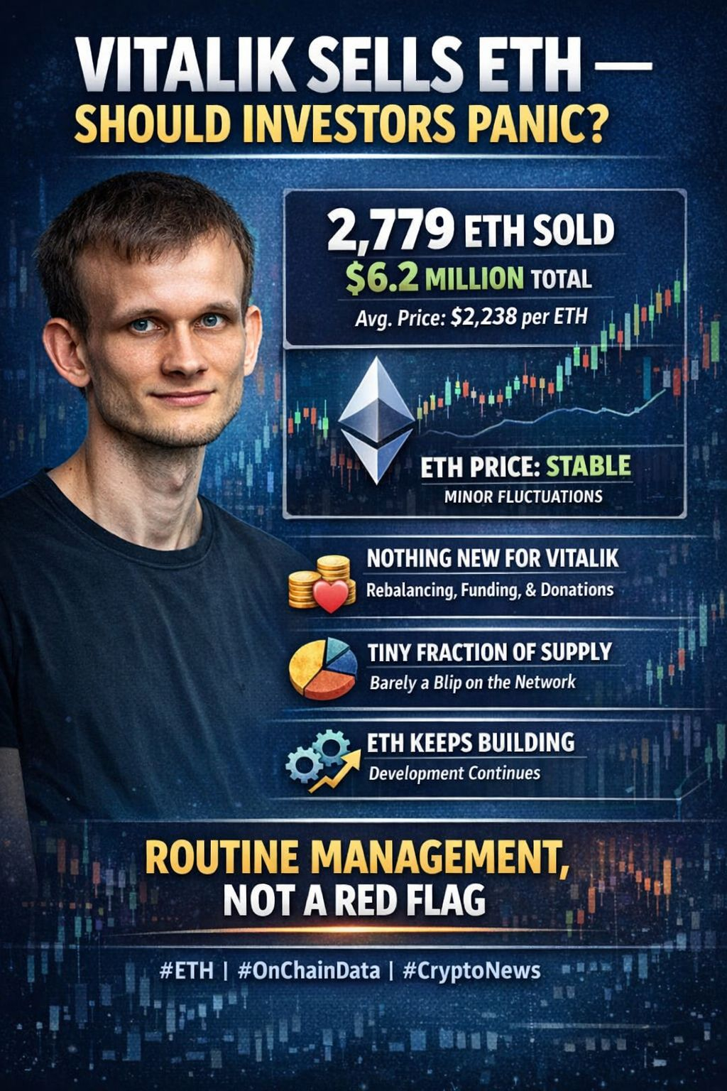 This also isn’t new behavior. Vitalik has a long history of transparent rebalancing, funding research, and supporting charitable initiatives — all visible on-chain. Importantly, this sale represents a tiny fraction of Ethereum’s total supply.