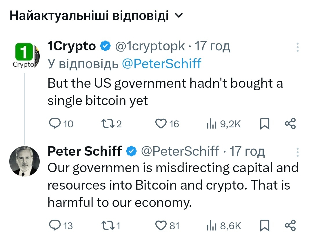 💬 Що хотілось додати, Шифф стабільний у своїй позиції🤷♂️ Але стабільно дивиться у минуле, він критикує біткоїн з 2013 року тоді як світ уже живе в реальності ETF, інституцій і регулювання.