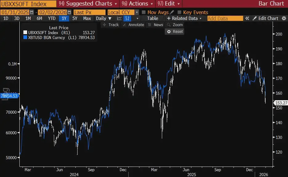 UBS SaaS 指数 vs 比特币