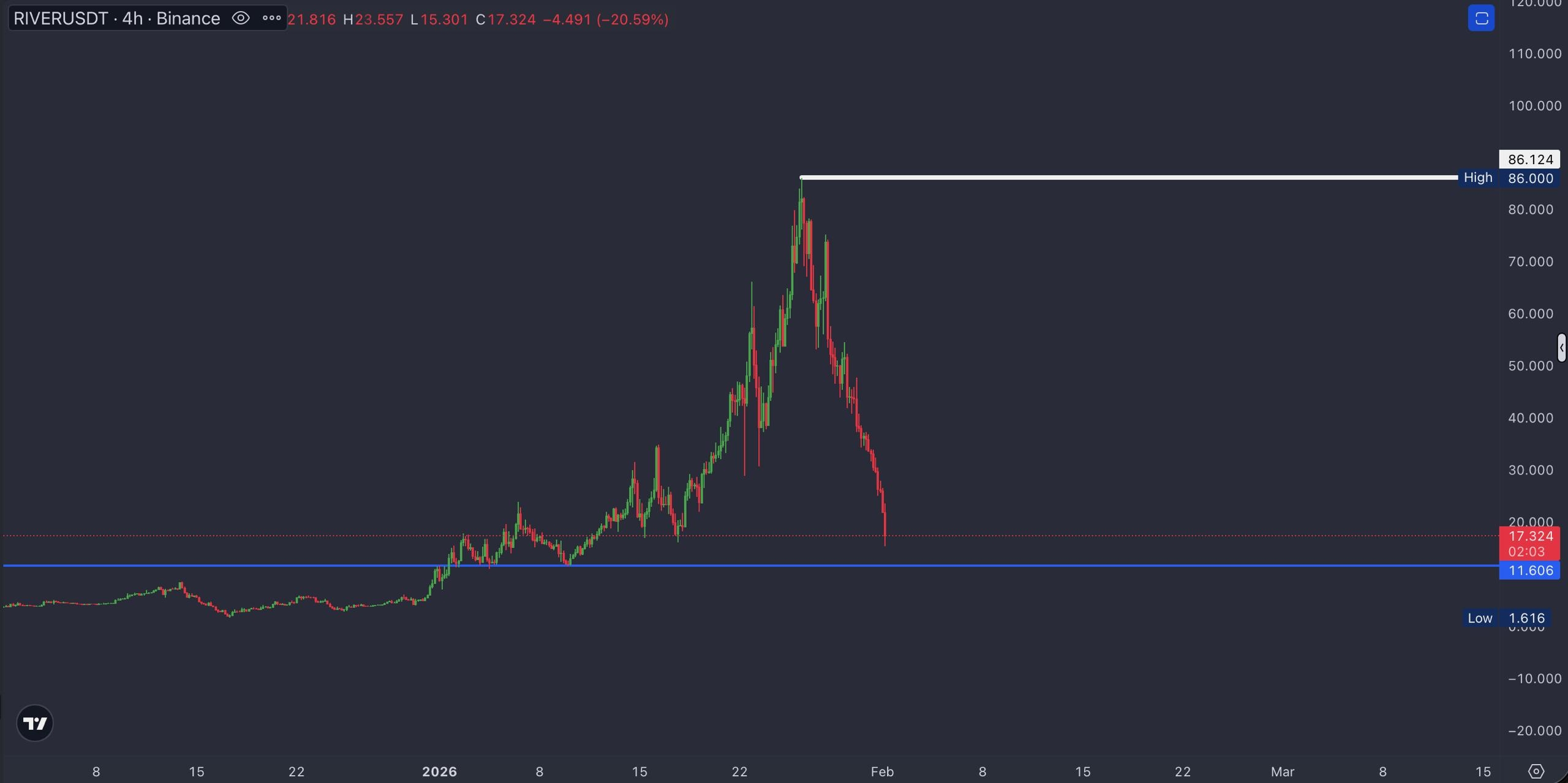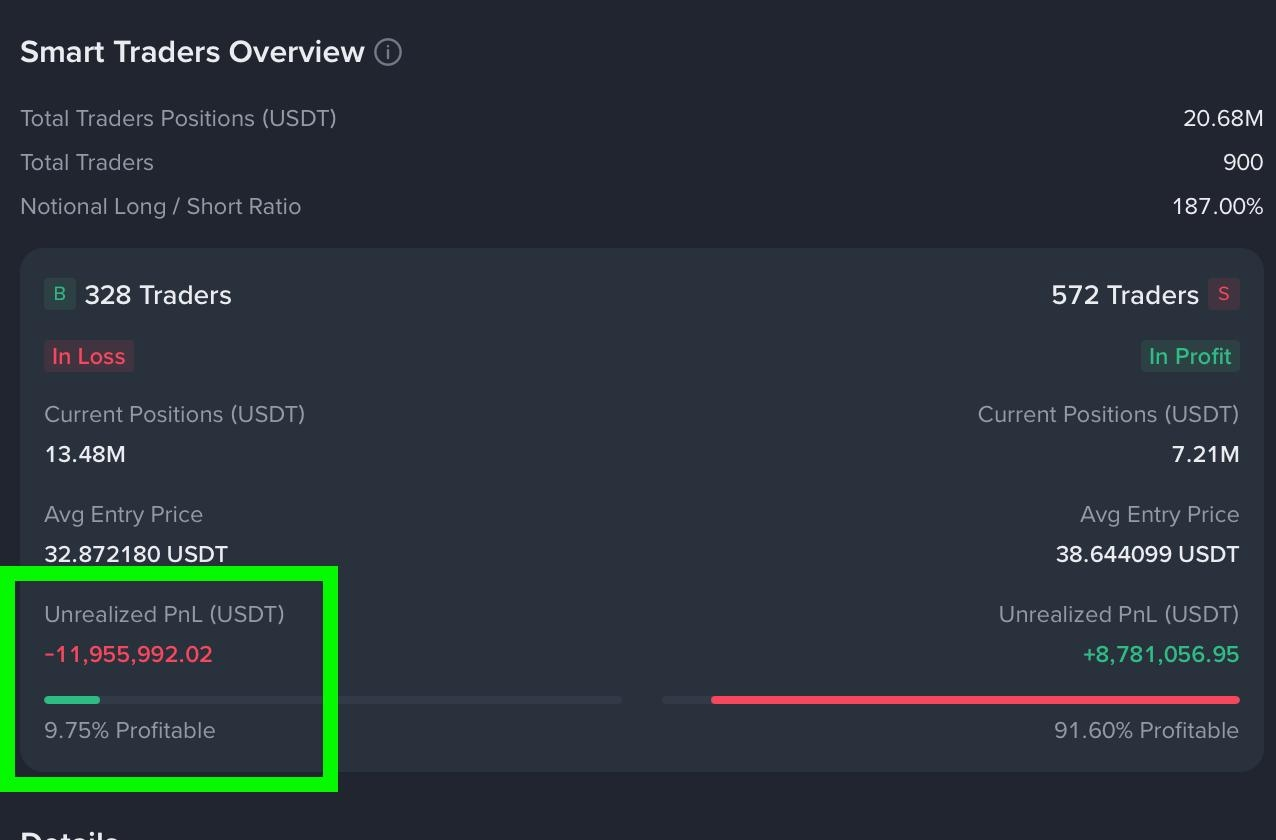 Posisi beli (long) saat ini mengalami kerugian besar, jadi setiap kenaikan harga kemungkinan akan segera ditindak dengan aksi jual.