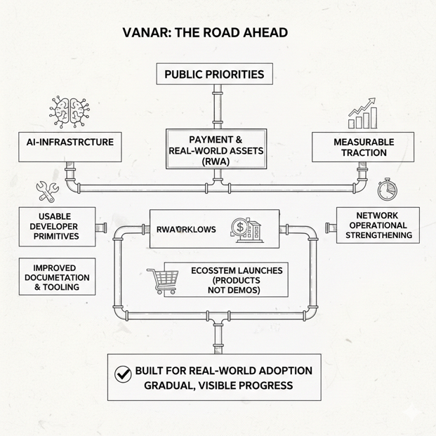 The most grounded way to think about what comes next for Vanar is to look at what the project itself is clearly prioritizing in its public materials, because the current emphasis suggests a continued push toward turning the AI-infrastructure framing into usable developer primitives, expanding the chain’s relevance to payment and real-world asset workflows, and showing that the “built for real-world adoption” positioning translates into measurable traction, and although this kind of progress does not always arrive as dramatic announcements, it is usually visible through repeated shipping, improved documentation and tooling, ecosystem launches that look like products rather than demos, and the gradual strengthening of the network’s operational story.