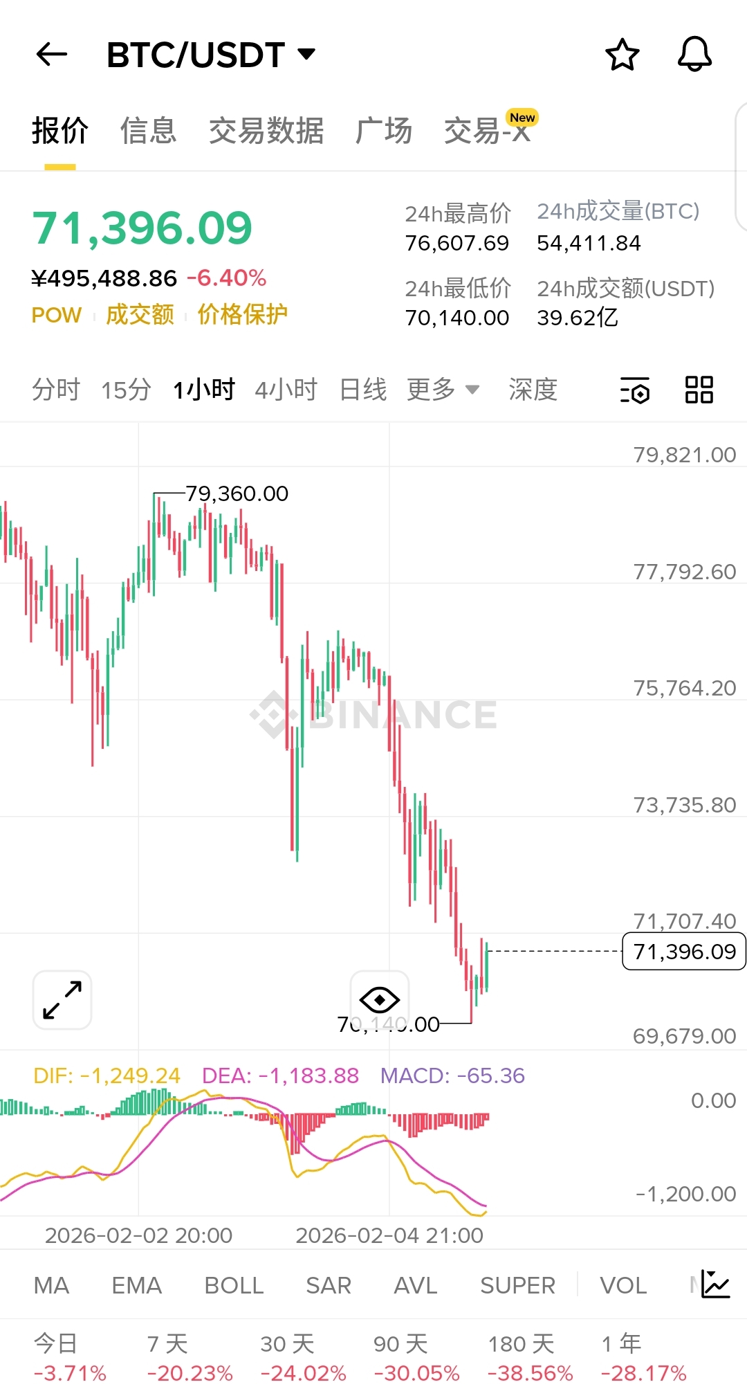 (2月5日)在昨日暴跌后徘徊在7.25万美元附近,更广泛的在动荡开局后企稳,跟随整体风险偏好略有改善的迹象,但交易员对短期走势方向依旧保持谨慎。$BTC