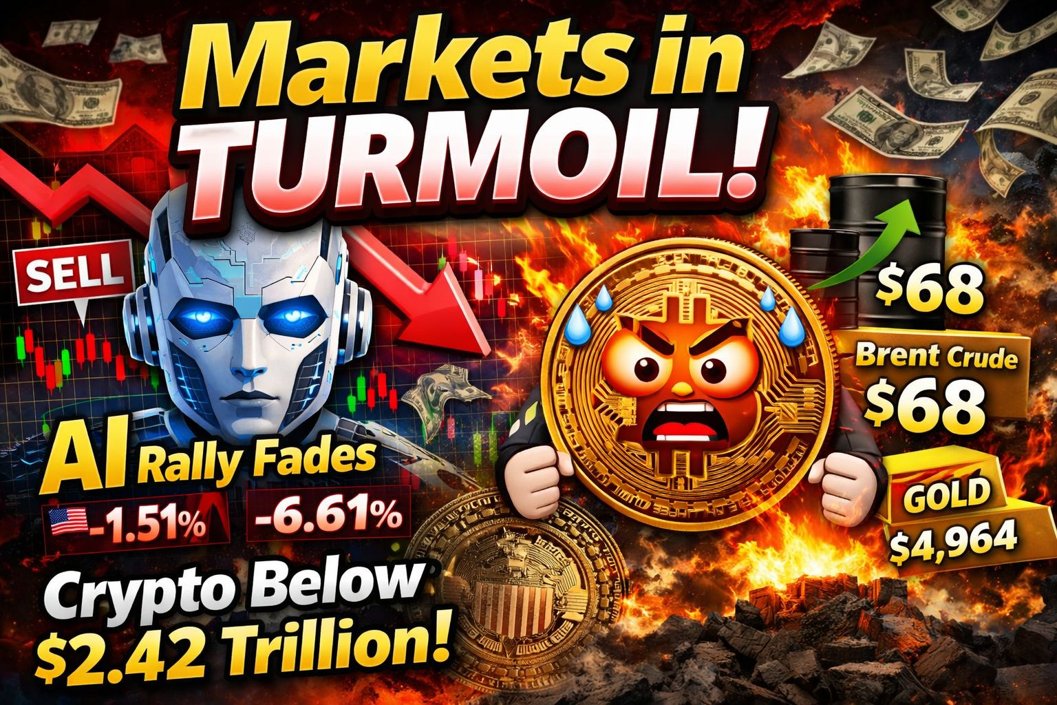 Piețele globale s-au întors brusc spre riscuri reduse 😬 pe măsură ce îndoielile cresc cu privire la evaluările exagerate și durabilitatea rally-ului condus de AI de pe Wall Street. Nu a fost un singur șoc ⚠️—ci, în schimb, o acumulare liniștită de îngrijorări că optimismul ar fi putut merge prea departe, prea repede. Datele economice mixte din SUA au adăugat la neliniște, sugerând o încetinire suficientă pentru a agita investitorii fără a declanșa panică 📊.