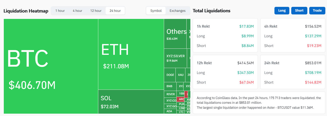 🔹️Добовий обсяг ліквідацій перевищив $853 млн.