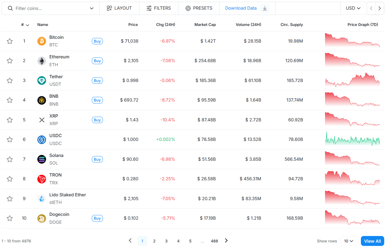 🔹️Біткоїн впав до зони $70 100, на деяких біржан навіть нижче.