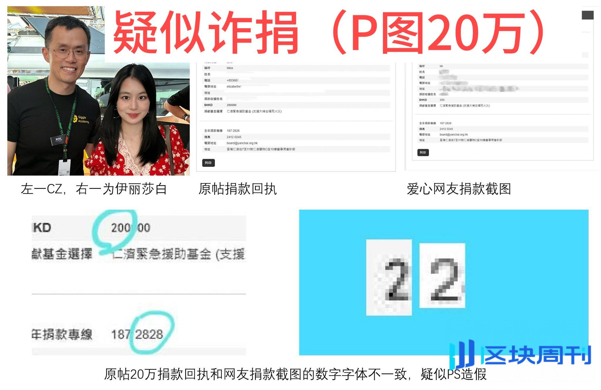 • 2025年12月1日:伊丽莎白(自称比特币持有者和degen trader,粉丝超13万)在X平台发布推文,宣称捐出20万港币援助仁济医院,配文“大火无情人有情”,并附上“捐款回执”截图。该推文迅速获得数十万浏览量和数千点赞,一度被视为行业正能量体现。
