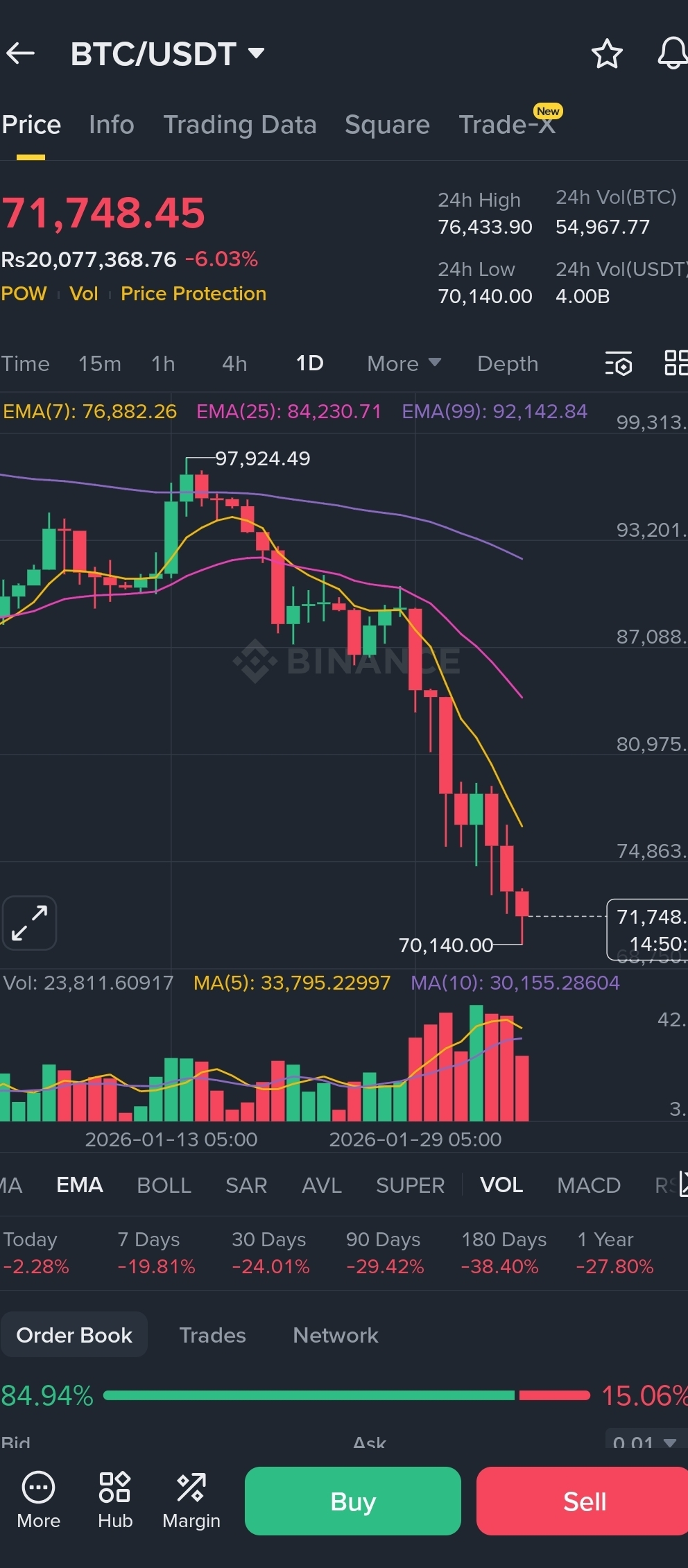 Bitcoin has dropped sharply, with steep declines of around 7–8% on single days and much larger weekly sell-offs.This downturn has wiped hundreds of billions in value off the entire crypto market.Major holders like Strategy (MicroStrategy) are under pressure because their Bitcoin is now worth less than they paid, affecting their balance sheets.