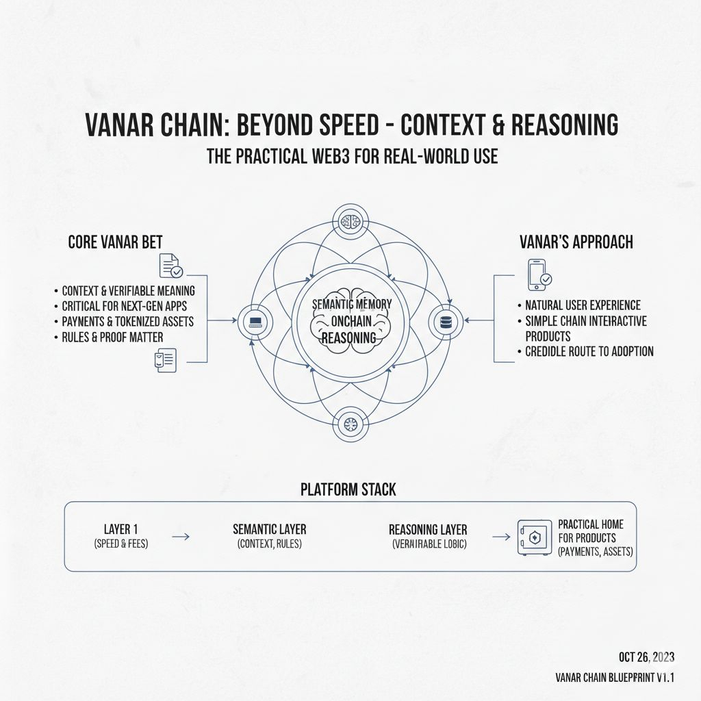 My takeaway is that Vanar is not betting on speed alone, and it is not trying to win by copying the same playbook as every other Layer 1, because its real bet is that context and verifiable meaning will become a core requirement for the next wave of applications, especially in areas like payments and tokenized assets where rules and proof matter, and if Vanar can make semantic memory and onchain reasoning feel natural to use while keeping the chain experience simple for end users, then the project has a credible route to becoming a practical home for products that aim beyond speculation.