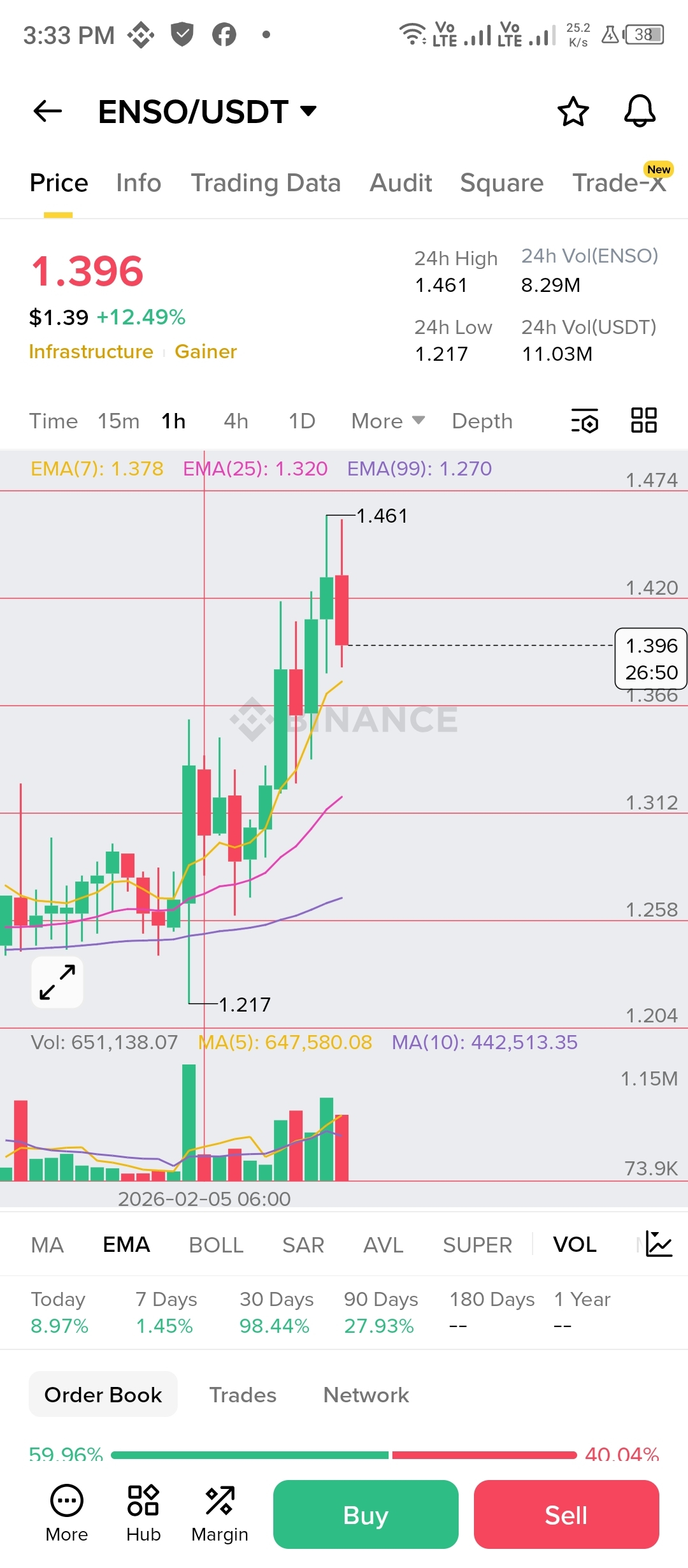 ENSO’s recent move higher is driven by a clean trend reversal + strong momentum continuation, supported by EMA structure, higher lows, and expanding volume.