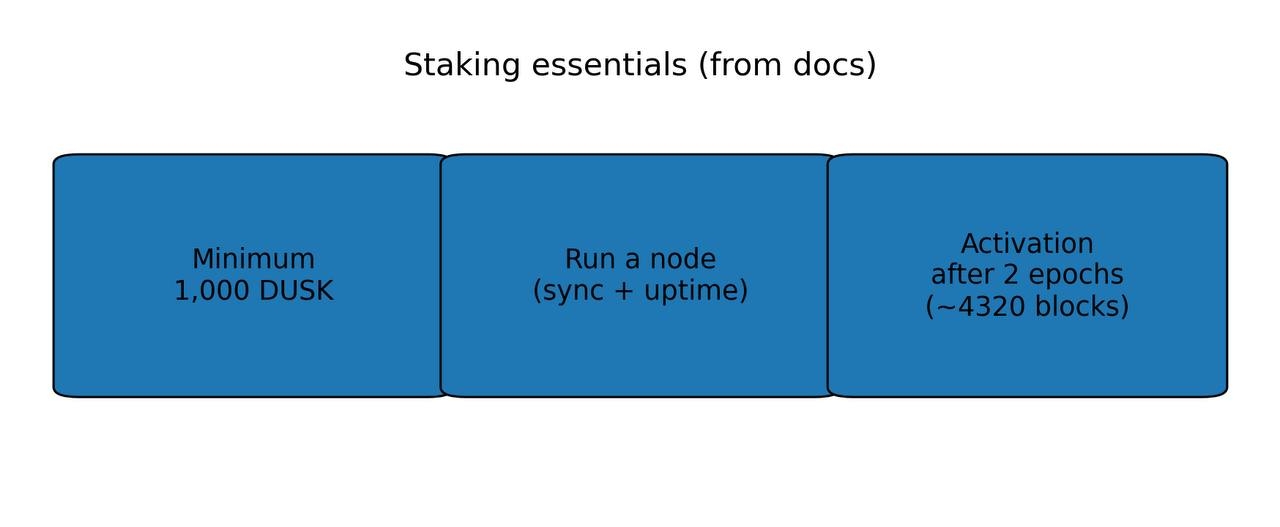 Then there’s token design, where Dusk is unusually transparent. The documentation lays out a max supply of 1,000,000,000 DUSK, made up of 500M initial supply plus 500M emitted over time to reward stakers over a long horizon. Gas accounting uses LUX, where 1 LUX = 10⁻⁹ DUSK, giving fine-grained fee pricing without rounding chaos. Staking isn’t hand-wavy either: the staking basics spell out practical requirements like a minimum threshold and activation after a short maturation period, reinforcing the idea that this network expects operators, not tourists.