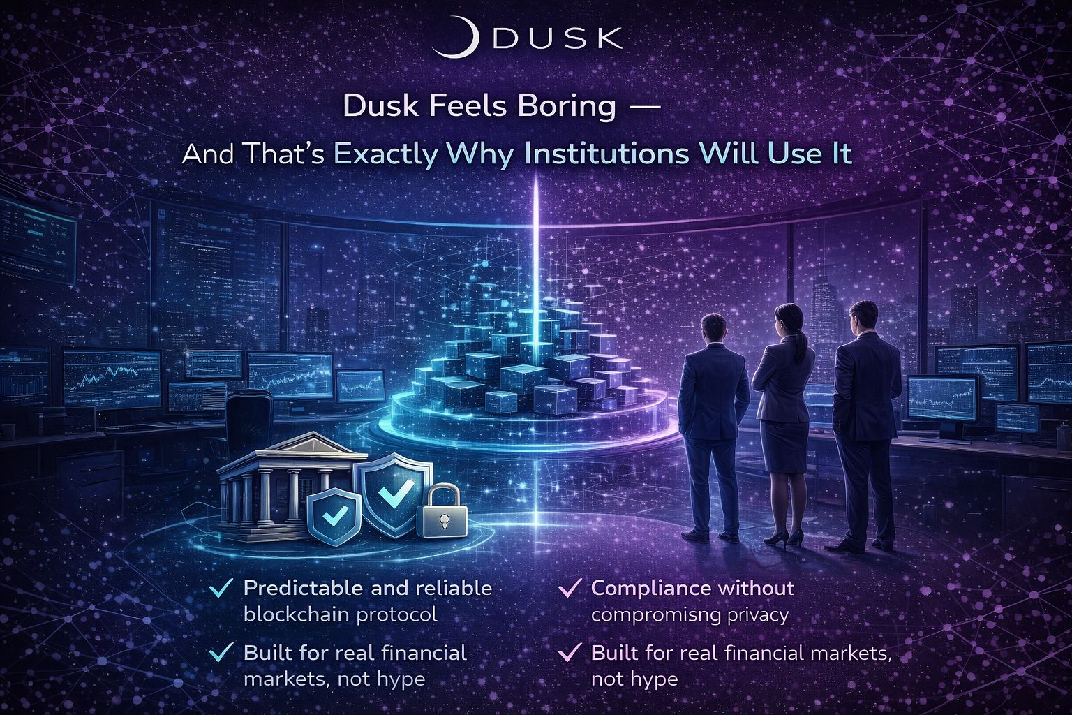 In crypto, “boring” is usually treated as an insult. It implies slow innovation, lack of hype, and no viral narrative to push prices higher overnight. But in institutional finance, boring is not a weakness it’s a requirement. Banks, asset managers, custodians, and regulators don’t look for excitement. They look for predictability, clarity, and systems that behave the same way today, tomorrow, and under stress. This is where Dusk quietly stands apart.