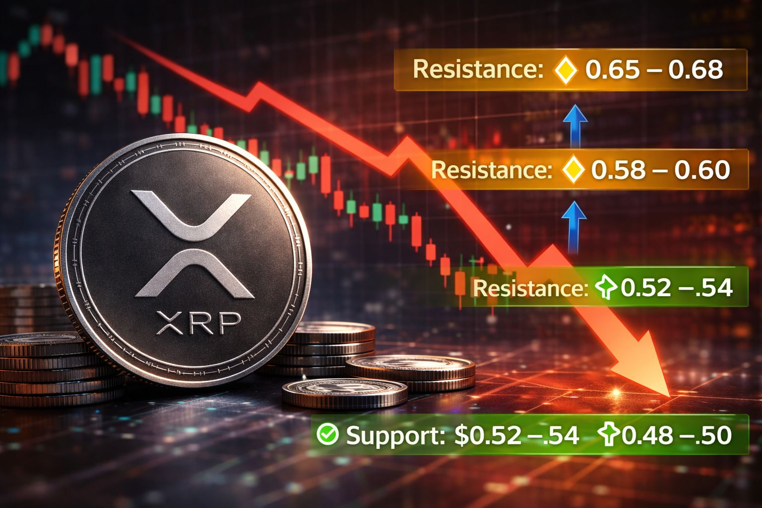 $XRP has been trending lower and is now trading near ✅ Support: $0.52–0.54 after sustained selling pressure. This zone represents a key demand area where buyers may attempt a short-term bounce.