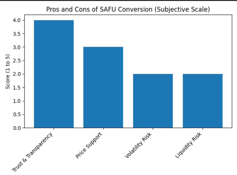 In order to sum up the discussion, the chart below assigns some of the perceived advantages and dangers of the topic subjectively. Although the move obviously has excellent points on trust and transparency and moderate points on price support, it presents significant risks on volatility and liquidity management.