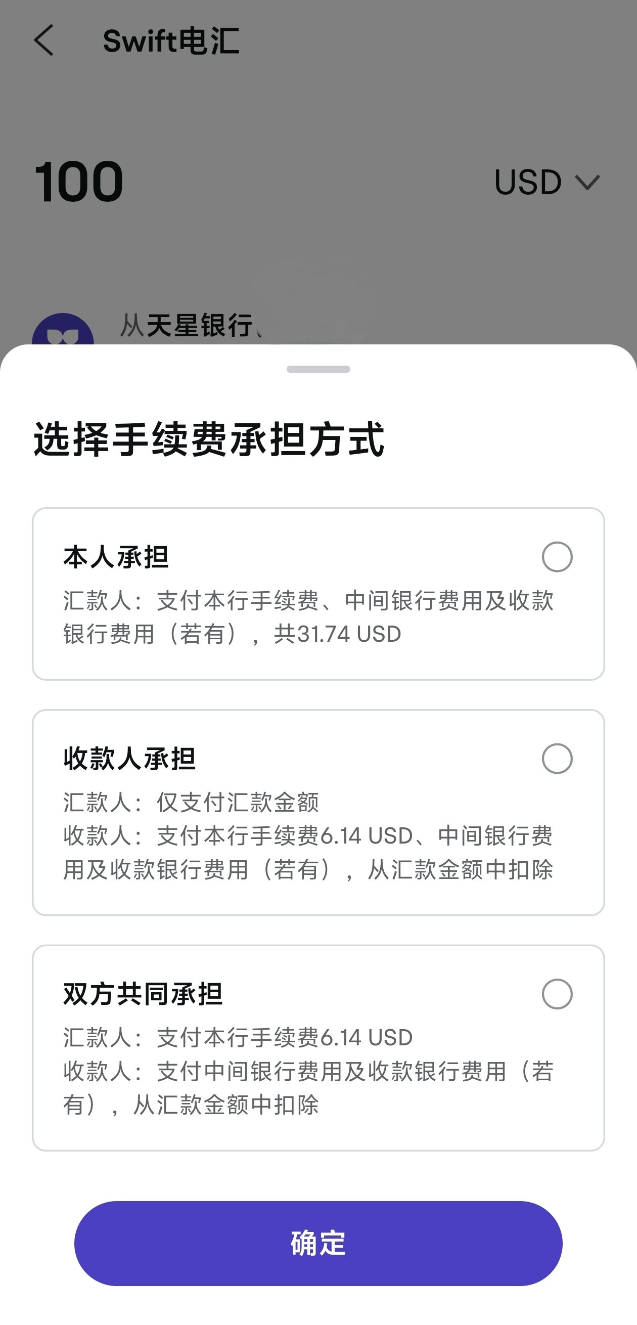 可是我一看,天星swift电汇的手续费真不低。100美元居然要收我6美元的手续费。这对于小额转账来说是个不小的数字。