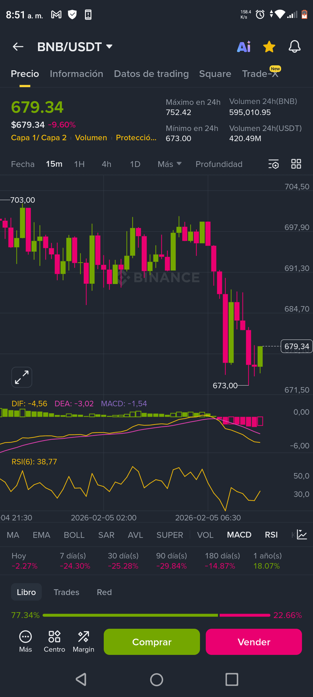 El mercado no te está robando dinero, te está pidiendo una mejor estrategia. Ver a $BNB bajar de $900 a $680 asusta a cualquiera, pero los que ganan en este juego no son los que tienen más suerte, sino los que tienen mejores Ventas Escalonadas.