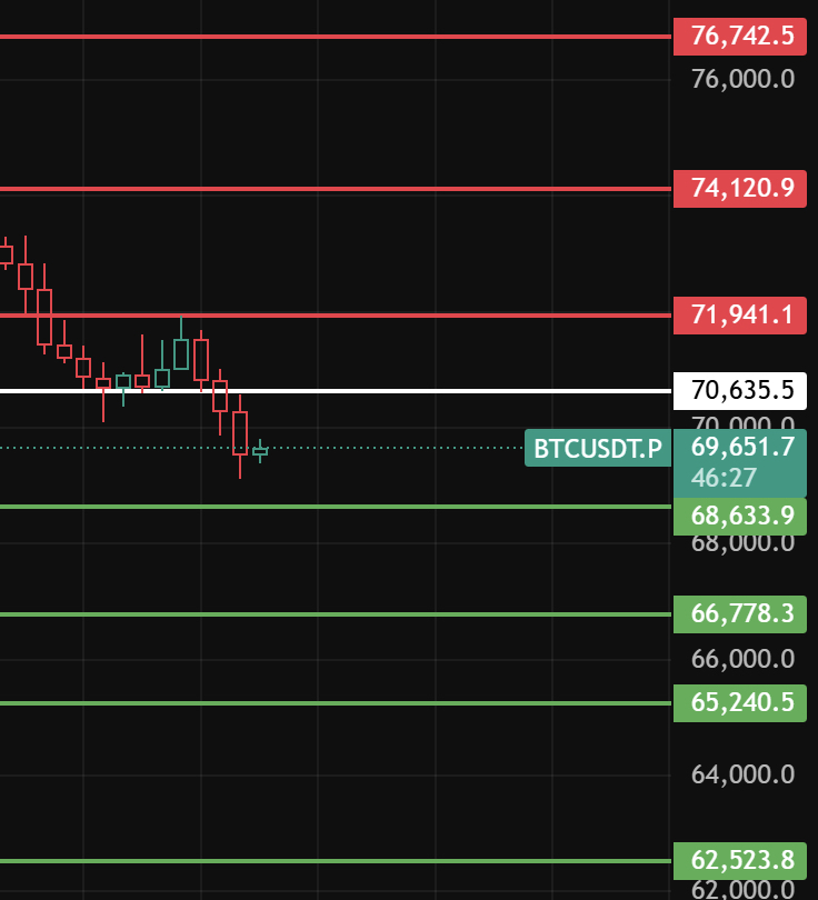 Dacă noaptea nu revin la deasupra 70635, înseamnă că revenirea pe un nivel mic nu are forță, continuă în jos, fii atent la nivelurile de suport de deasupra, 68630-66780-65240 în apropierea acestor locuri!#BTC走势分析