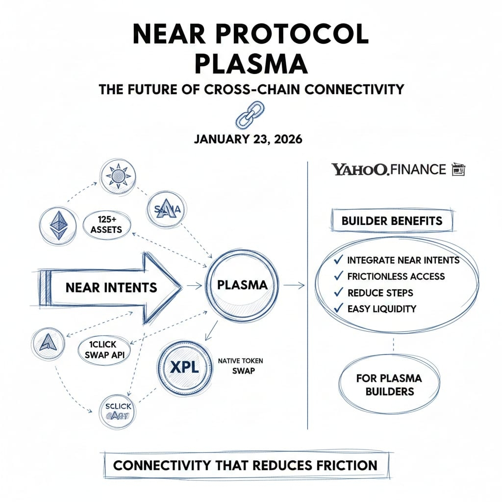 On January 23, 2026, NEAR Protocol posted that Plasma is live on NEAR Intents, enabling users to swap 125+ assets across 25+ chains to and from Plasma’s native token XPL. Yahoo Finance’s coverage of the same integration highlighted that Plasma builders can integrate NEAR Intents through the 1Click Swap API to give users more frictionless access across chains.