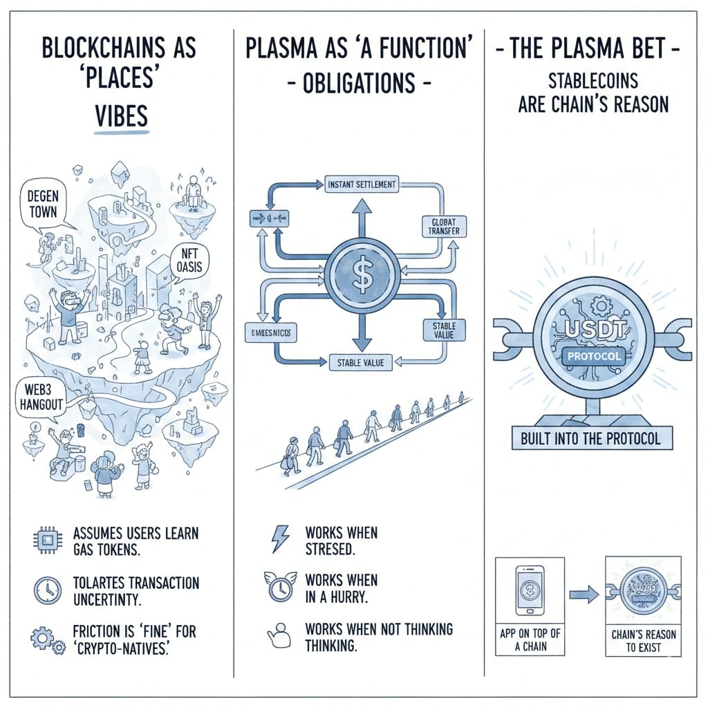 I keep coming back to this idea that most blockchains are trying to be a place while Plasma is trying to be a function.