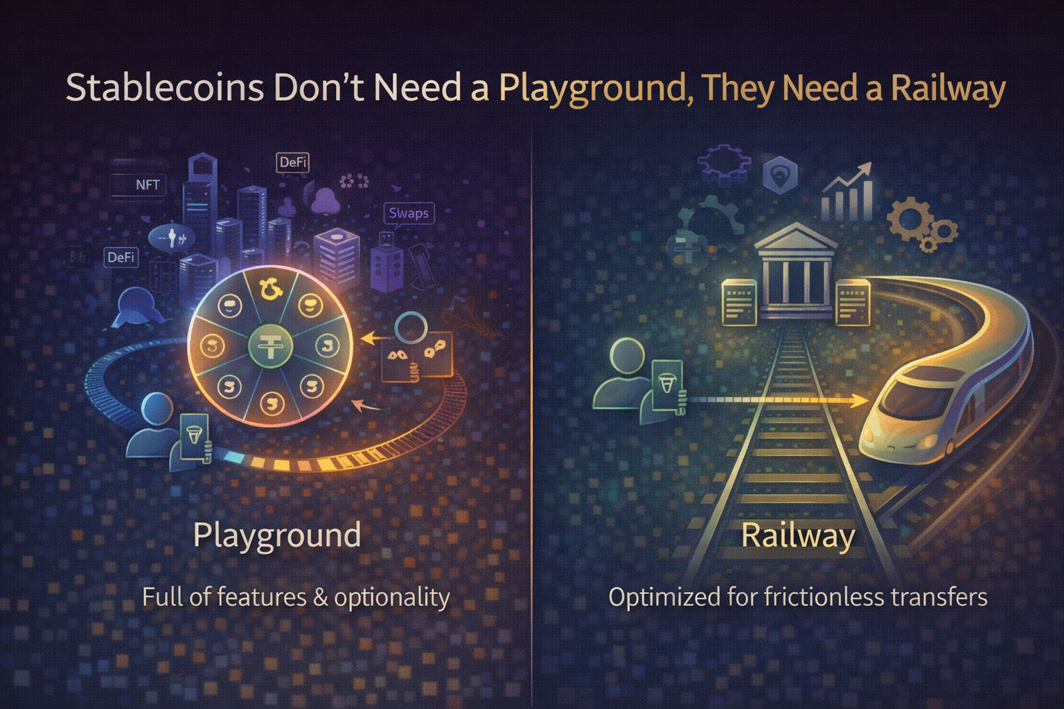 Stablecoins Don’t Need a Playground, They Need a RailwayMost blockchains still behave like digital cities built for tourists. They’re full of features, full of possibilities, full of optionality. But stablecoins are not tourists. Stablecoins are commuters. They don’t want to explore the ecosystem. They want to reach the destination without friction, without drama, and without needing to learn local customs every time they switch networks.