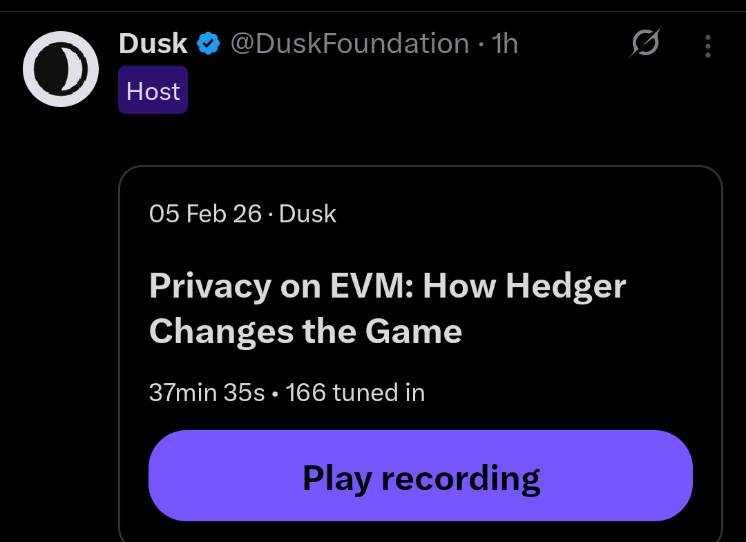 Overall, the Space painted a clear picture: the future of on-chain finance isn’t fully transparent or fully hidden it’s verifiable privacy. With Hedger, Dusk is aiming to make EVM powerful enough for real financial markets, where confidentiality, fair execution, and compliance all matter at the same time.