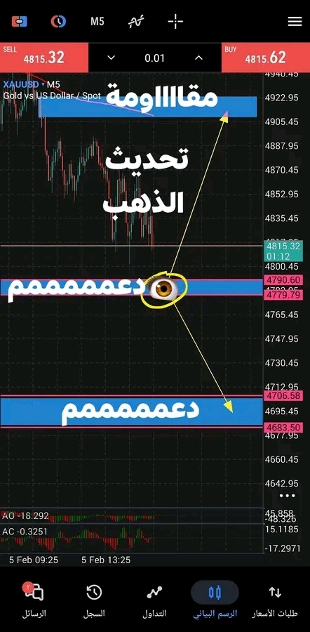 تحديث تحليلات الذهب الان على فريم ال 5 د