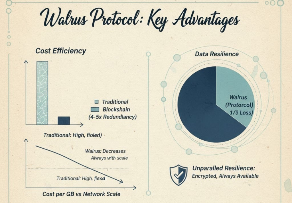 Walrus directly addresses this problem. It utilizes advanced erasure tokenization technology to segment data into distributed "silvers" and store them across a decentralized network of nodes. What is its breakthrough significance? Even if up to two-thirds of the network is lost or damaged, Walrus can still fully recover the original data while maintaining at least 4-5 times the redundancy. This is comparable to the efficiency of centralized cloud computing services, and due to decentralization, it also brings unparalleled flexibility and transparency.