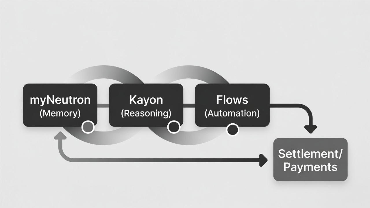 myNeutron(记忆)/ Kayon(推理)/ Flows(自动化)+ 支付结算,刚好对应四件套的骨架。