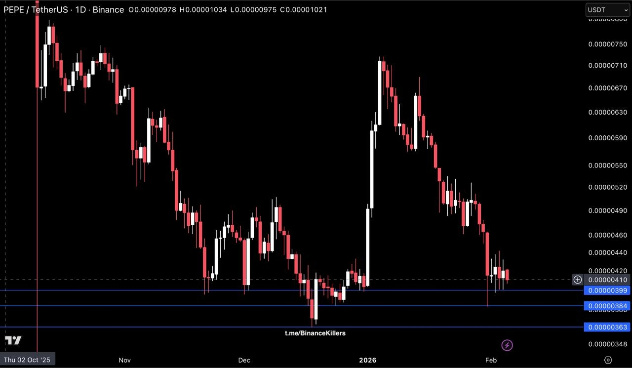 Enquanto a região de 0.00000410–0.00000420 limitar o preço, o risco de queda permanece.