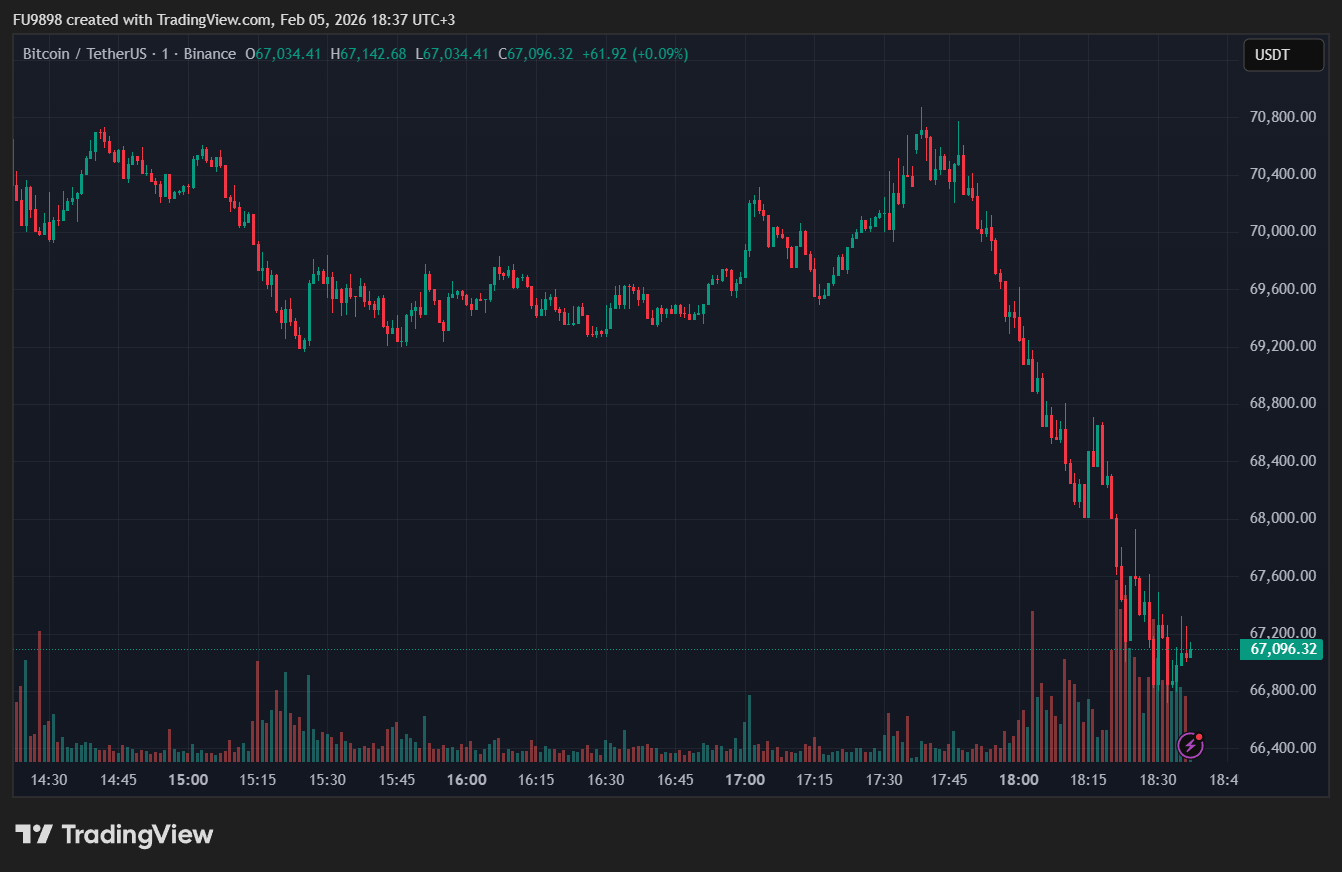Giá Bitcoin đã giảm xuống mức thấp nhất là 67.000 đô la trong ngày, chạm mức thấp nhất kể từ tháng 11 năm 2024. Hiện đang giao dịch ở mức 67.099 đô la, BTC đã mất 10,24% giá trị trong 24 giờ qua, trong khi mức giảm hàng tuần đạt 21,35%. Vốn hóa thị trường của Bitcoin đã giảm xuống còn 1,34 nghìn tỷ đô la.