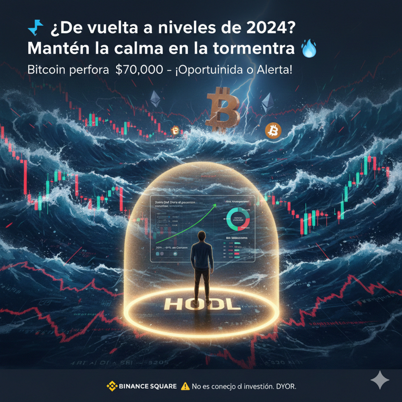 El mercado nos está dando una sacudida que no veíamos en mucho tiempo. Hoy, Bitcoin ha perforado la barrera de los $70,000, un nivel que nos transporta emocionalmente a finales de 2024, borrando gran parte de las ganancias que vimos tras el rally de finales del año pasado.
