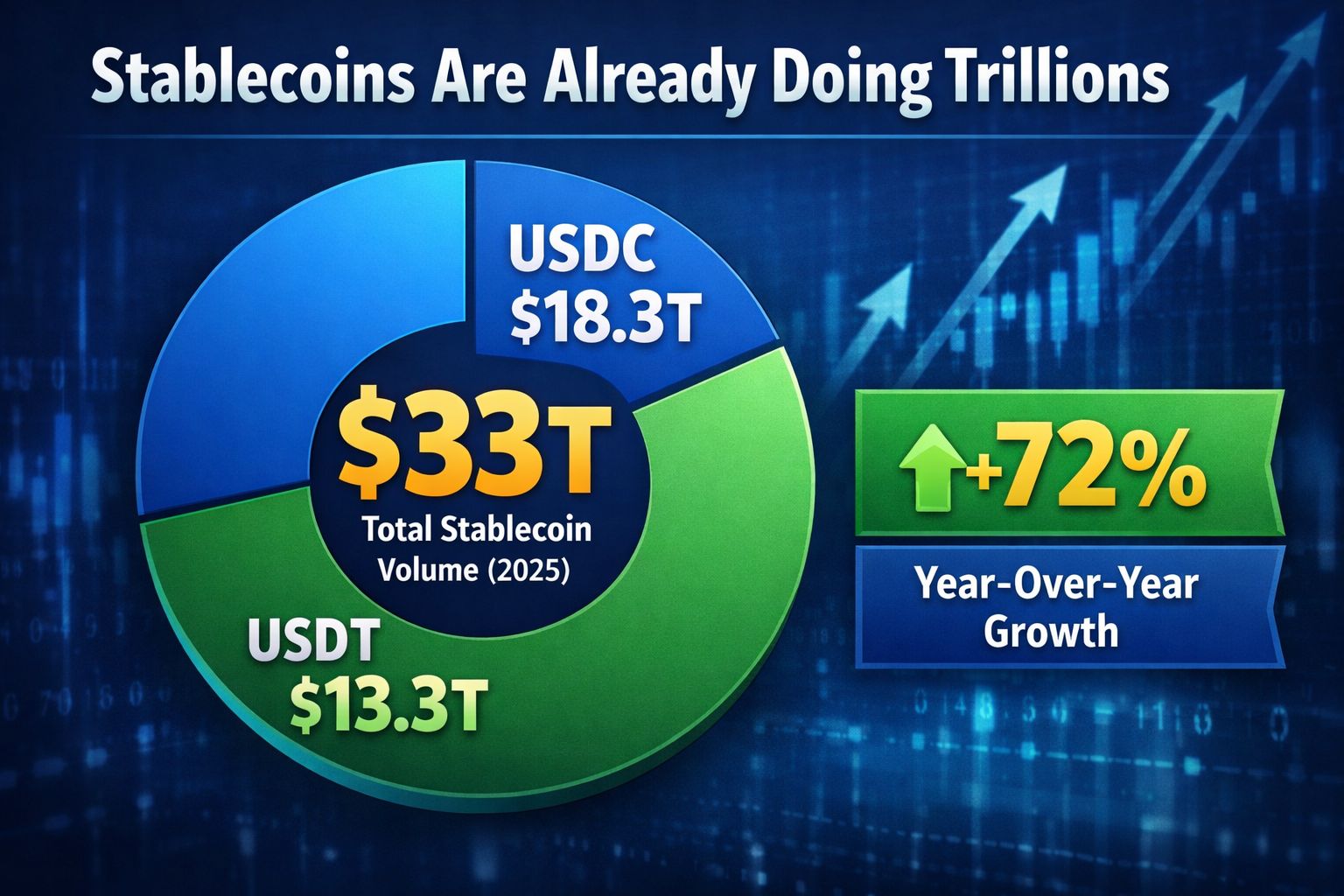 Plasma is having a moment because the market finally admits what traders have known for years: the “real” crypto volume isn’t always spot or perp trading, it’s dollars moving around the world as stablecoins. In 2025 alone, global stablecoin transaction value was reported at about $33 trillion, up roughly 72% year over year, with USDC handling $18.3T and USDT around $13.3T in transaction flow (data compiled by Artemis and cited by Bloomberg). When flows get that big, the conversation stops being “can blockchains scale?” and becomes “which rails can handle payments without breaking user experience?”