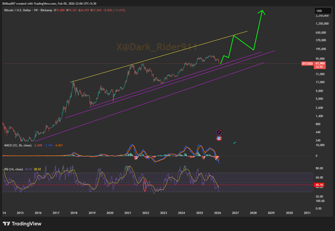 BTC este în corecția sa naturală, va găsi următorul său suport și faza de acumulare și va începe să crească. Dorești să știi următoarea țintă? Iată graficul.