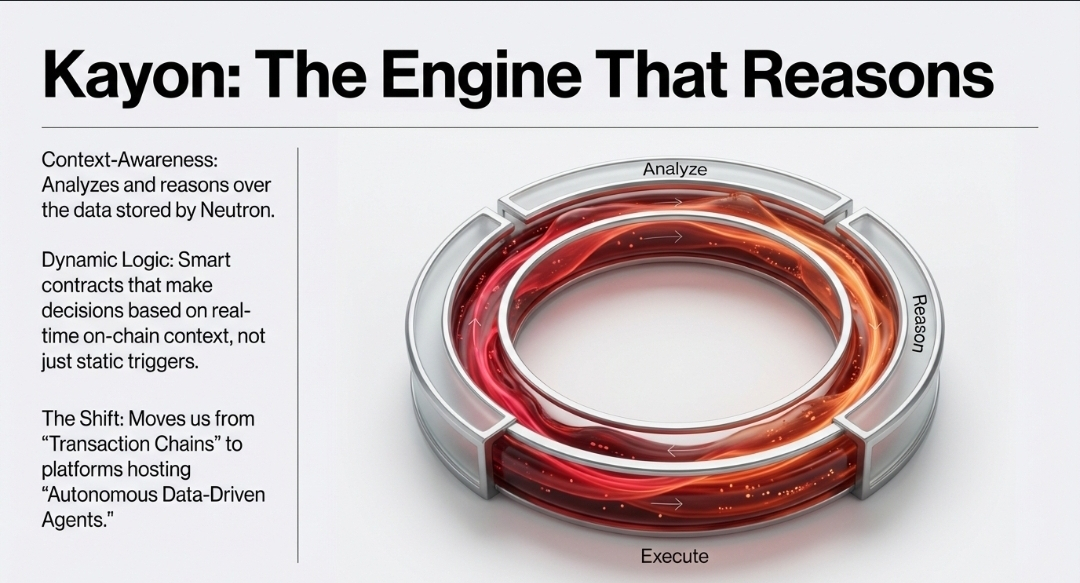 Kayon is the reasoning engine a system that understands, analyzes, and reasons over data stored onchain. It essentially brings intelligence into smart contracts so they can make decisions based on real context rather than just static conditions.