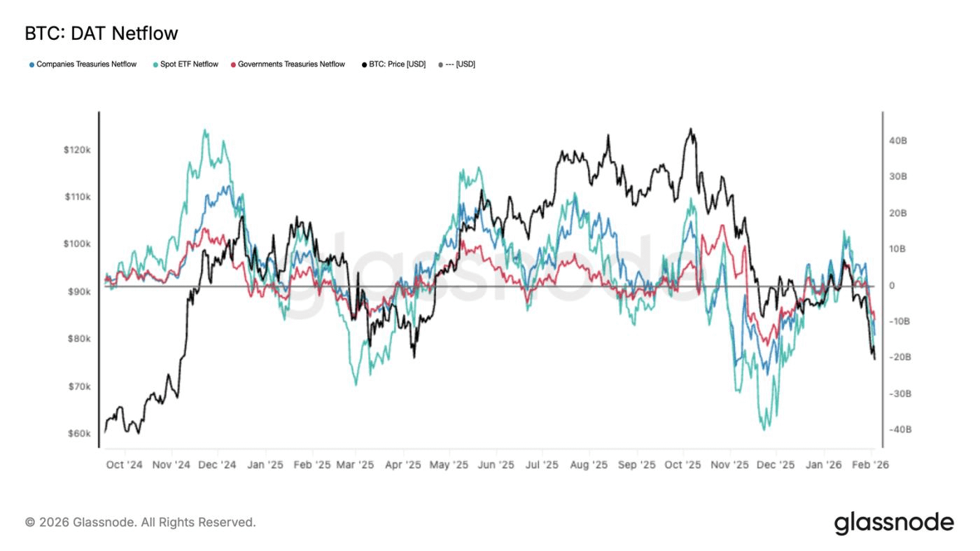 Tổ chức rút lui: Dòng vốn ETF Spot và các quỹ liên quan đến doanh nghiệp/chính phủ đang ghi nhận dòng tiền chảy ra (outflow). Điều này trái ngược hoàn toàn với giai đoạn tăng giá trước đó.