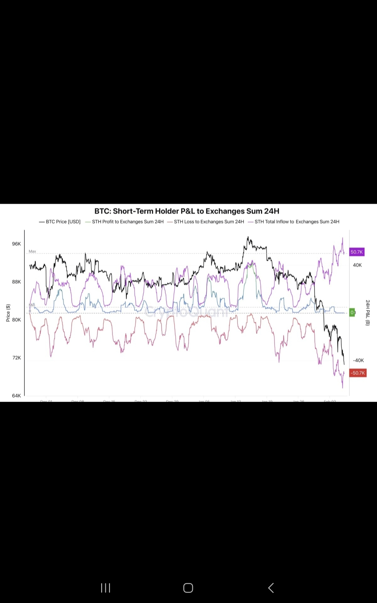 Nearly 60,000 BTC, worth about $4.2 billion at current rates, held by short-term holders (STHs), or investors who have held the asset for less than 155 days, were moved to exchanges at a loss over the last 24 hours, according to data from CryptoQuant.
