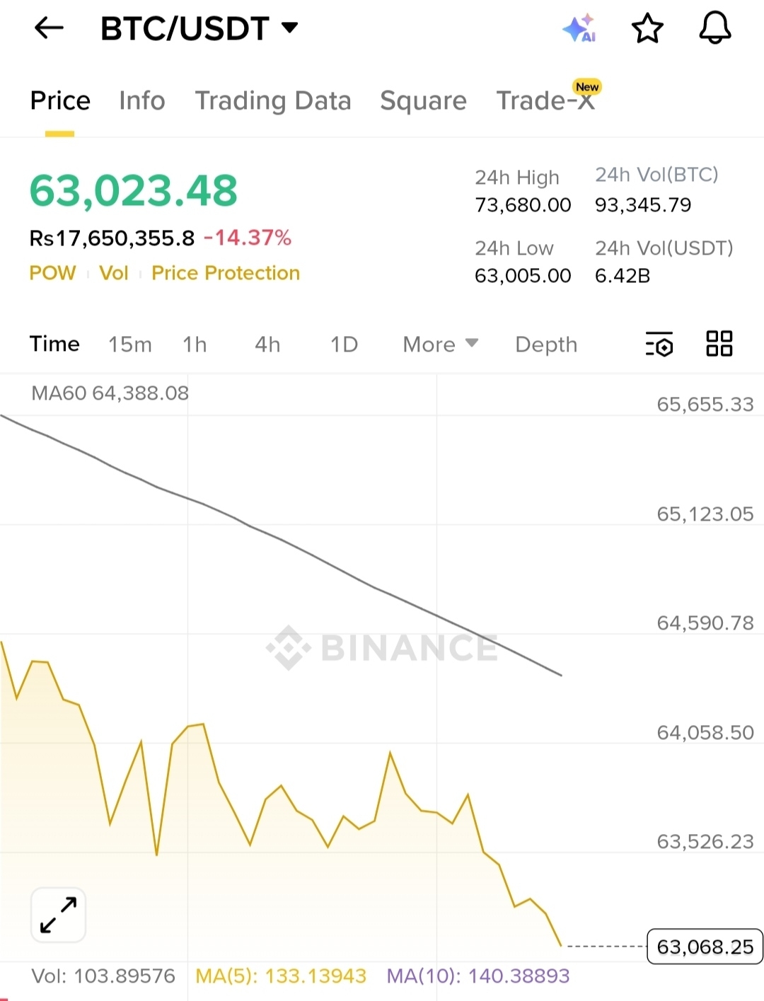 Minimul din ultimele 24 de ore: 63.005 $