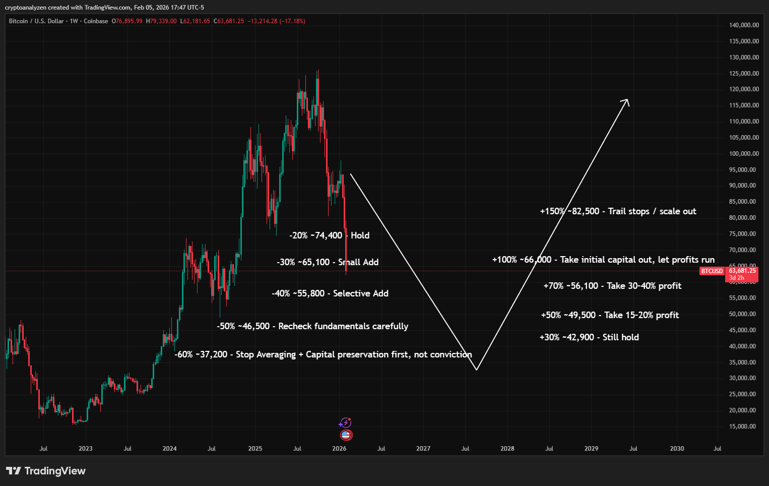 🔹 30% drop (≈ around 65K) → Add small size (if thesis is intact)