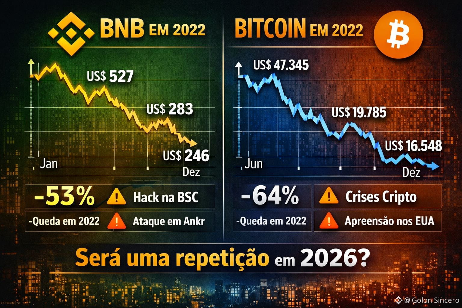Queda no ano: ~ -64 % em relação ao início do ano (BTC desvalorizou significativamente) 📌