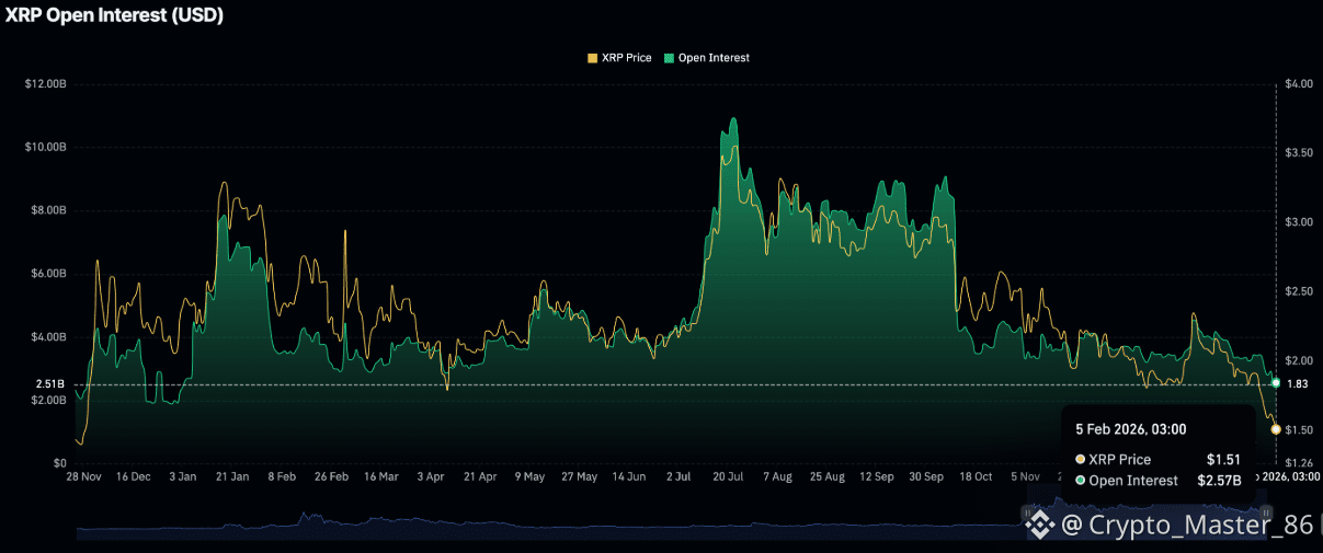 Nếu làn sóng thoát vị thế trên thị trường phái sinh tiếp tục — thể hiện qua việc đóng lệnh nhiều hơn mở mới — triển vọng phục hồi của XRP sẽ vẫn hết sức mong manh. Khi đó, giá có nguy cơ kéo dài đà giảm về vùng đáy ngày 10/10 quanh mốc 1,25 USD.