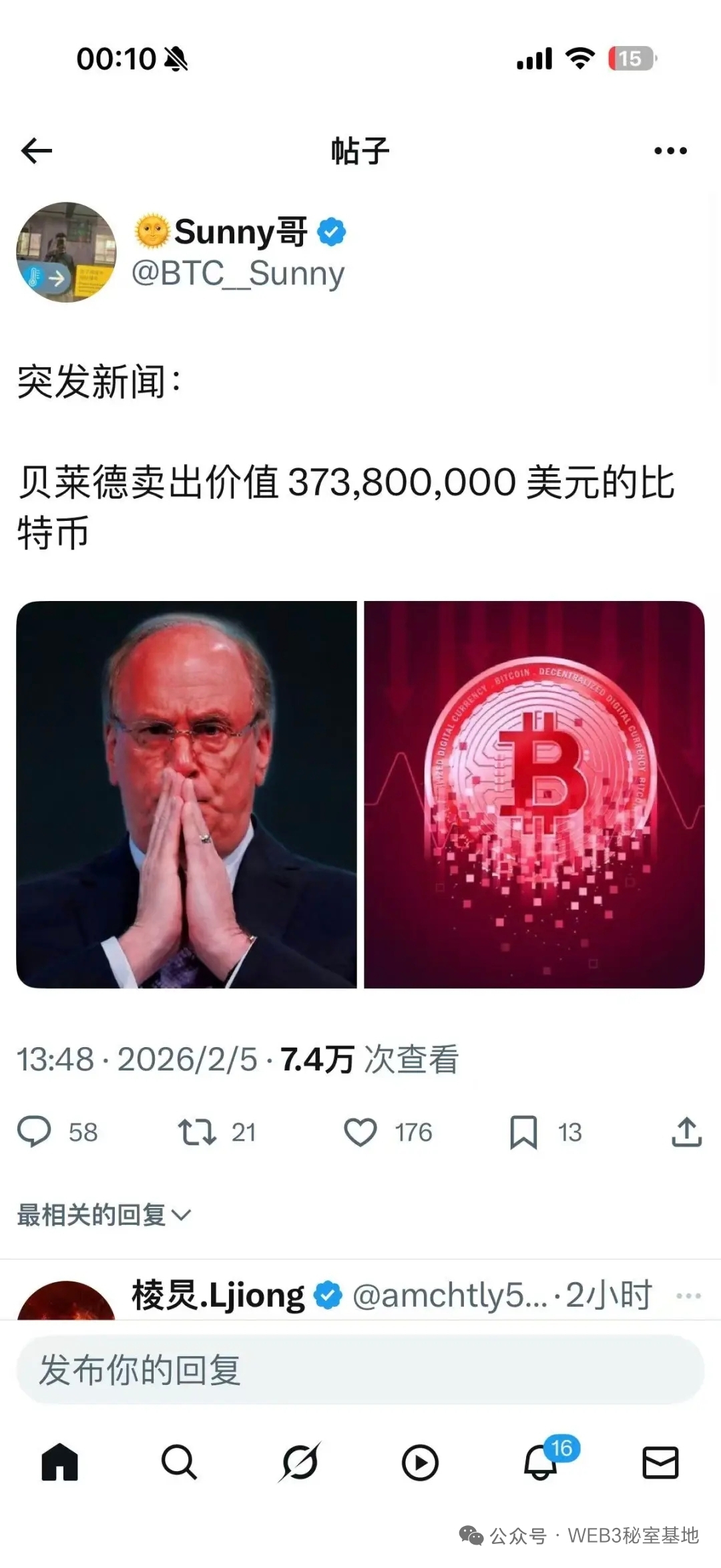 这波暴跌的直接导火索,正是贝莱德突然抛售了价值3.738亿美元的比特币。作为全球最大的资管机构,贝莱德的一举一动都牵动着市场神经。这一巨量抛单瞬间引发了市场的恐慌性抛售,散户和量化资金纷纷跟风出逃,让整个加密货币市场陷入了剧烈动荡。
