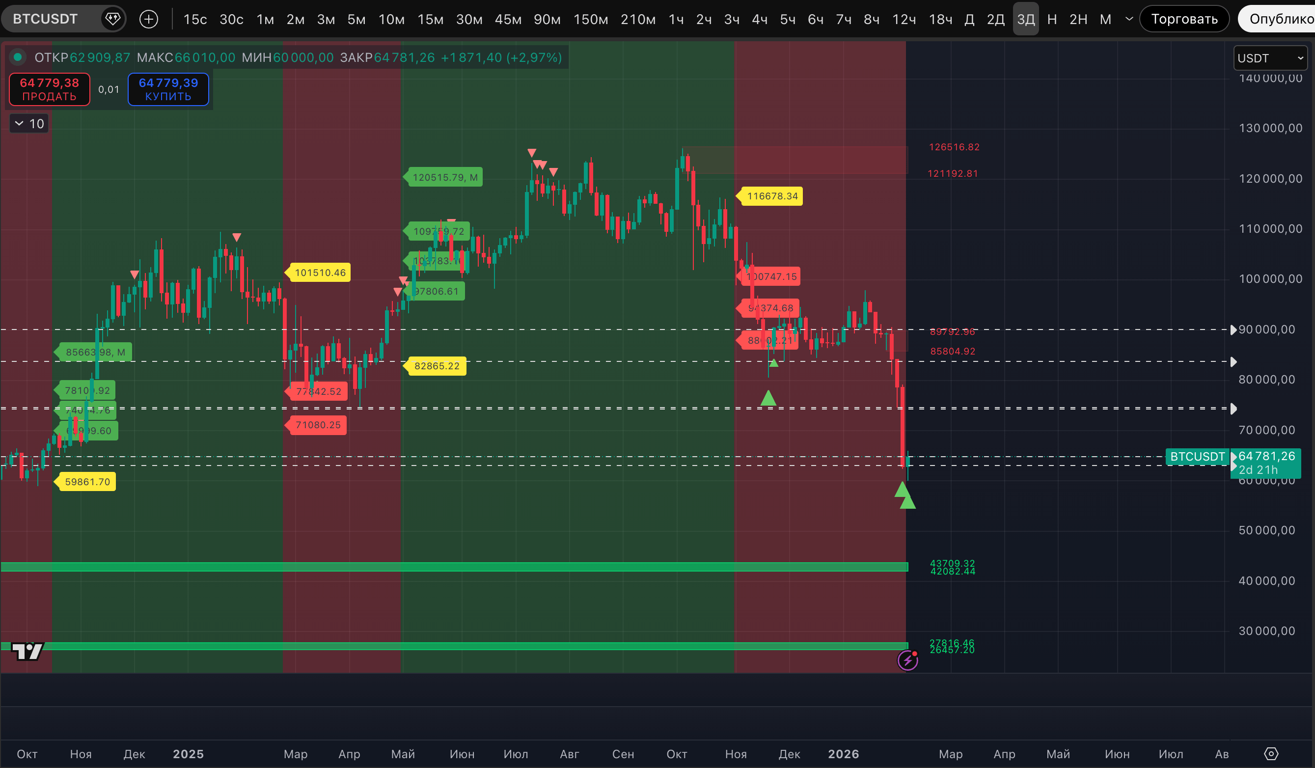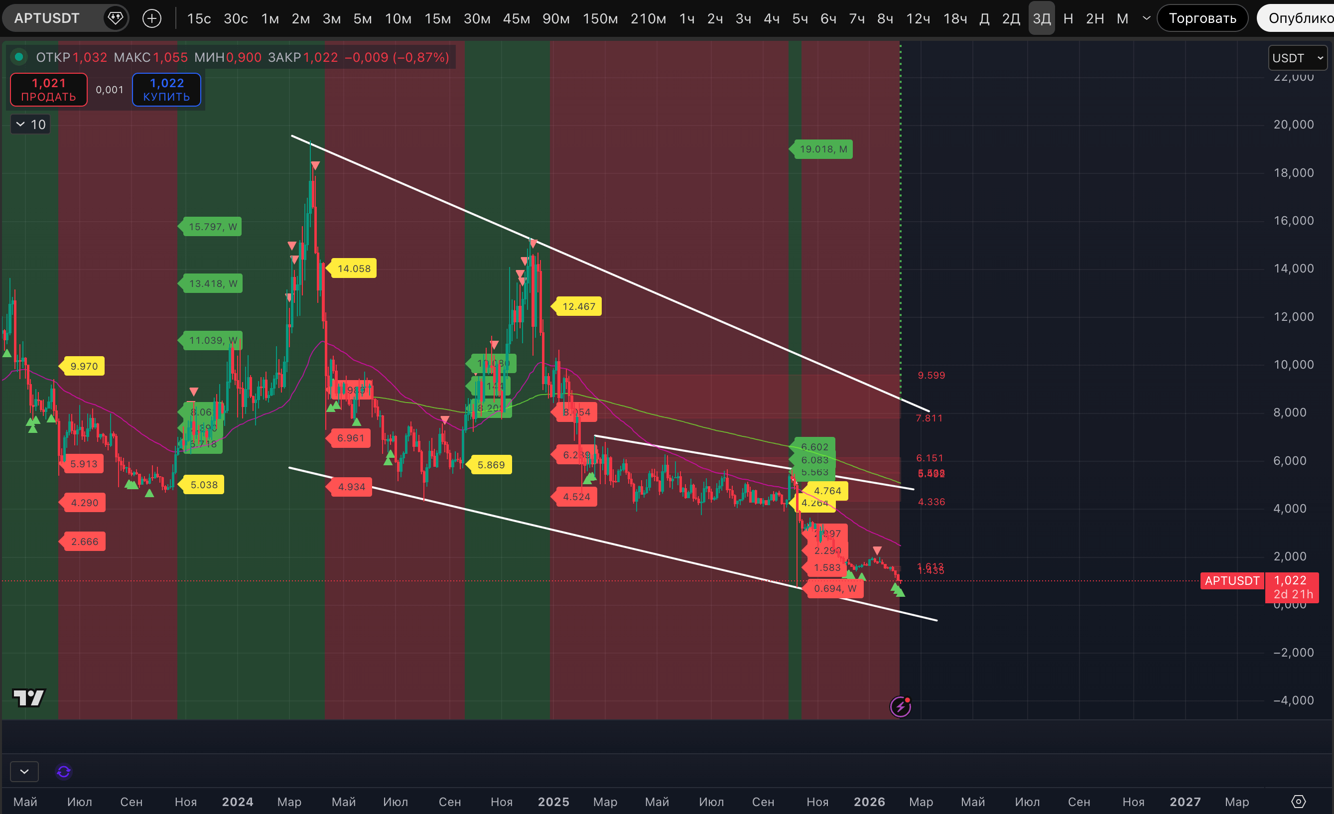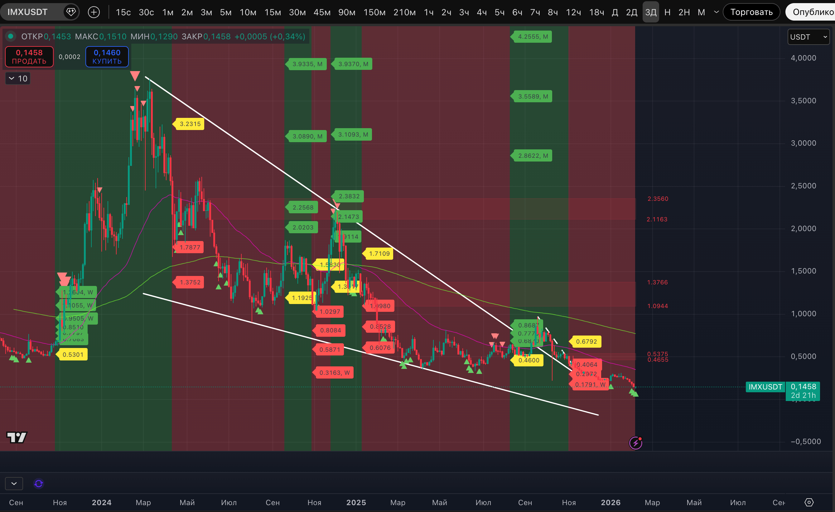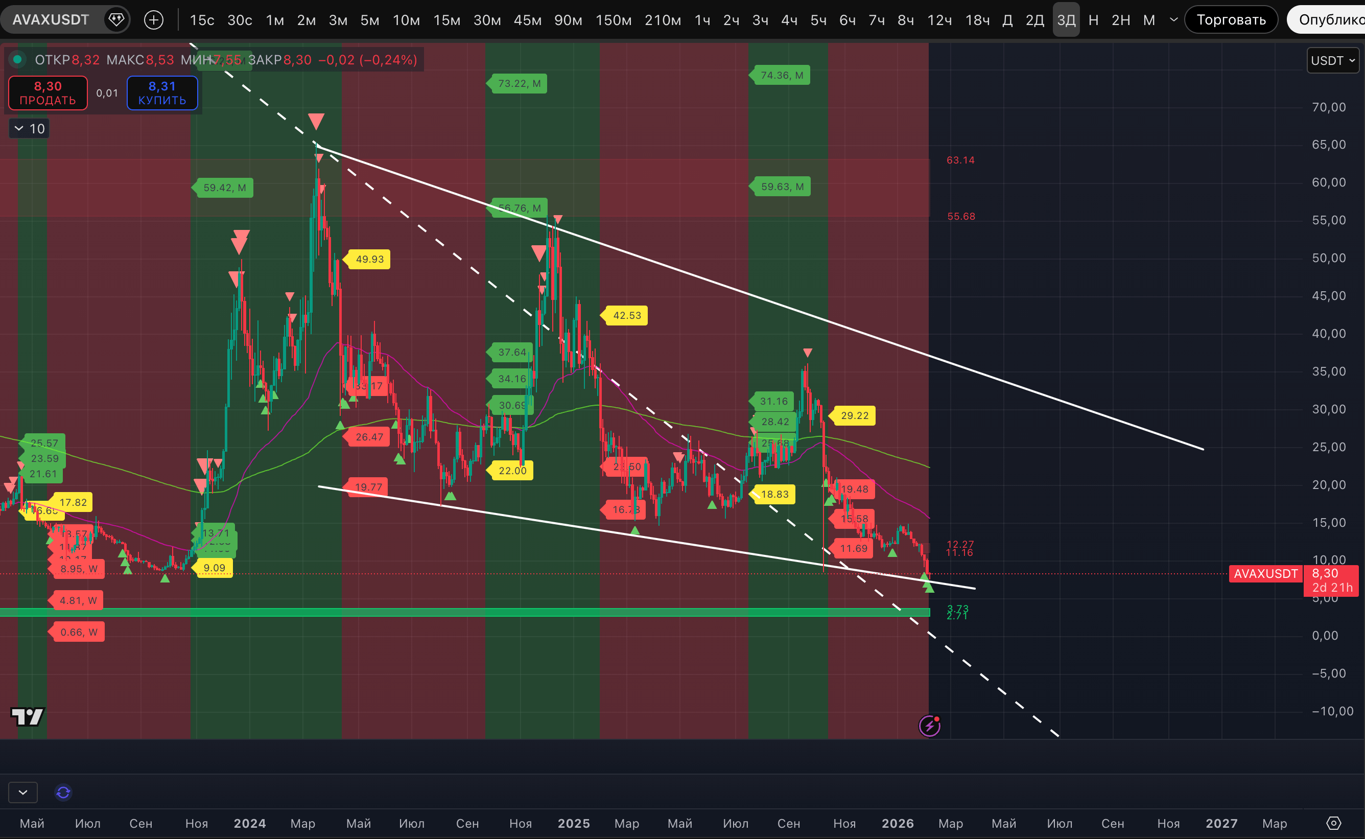 La un număr mare de criptovalute în prezent - două sau trei etichete de suport potențial din trei posibile pe TF de 3 zile. Noua lumânare de 3 zile, amintim, s-a deschis în această noapte.