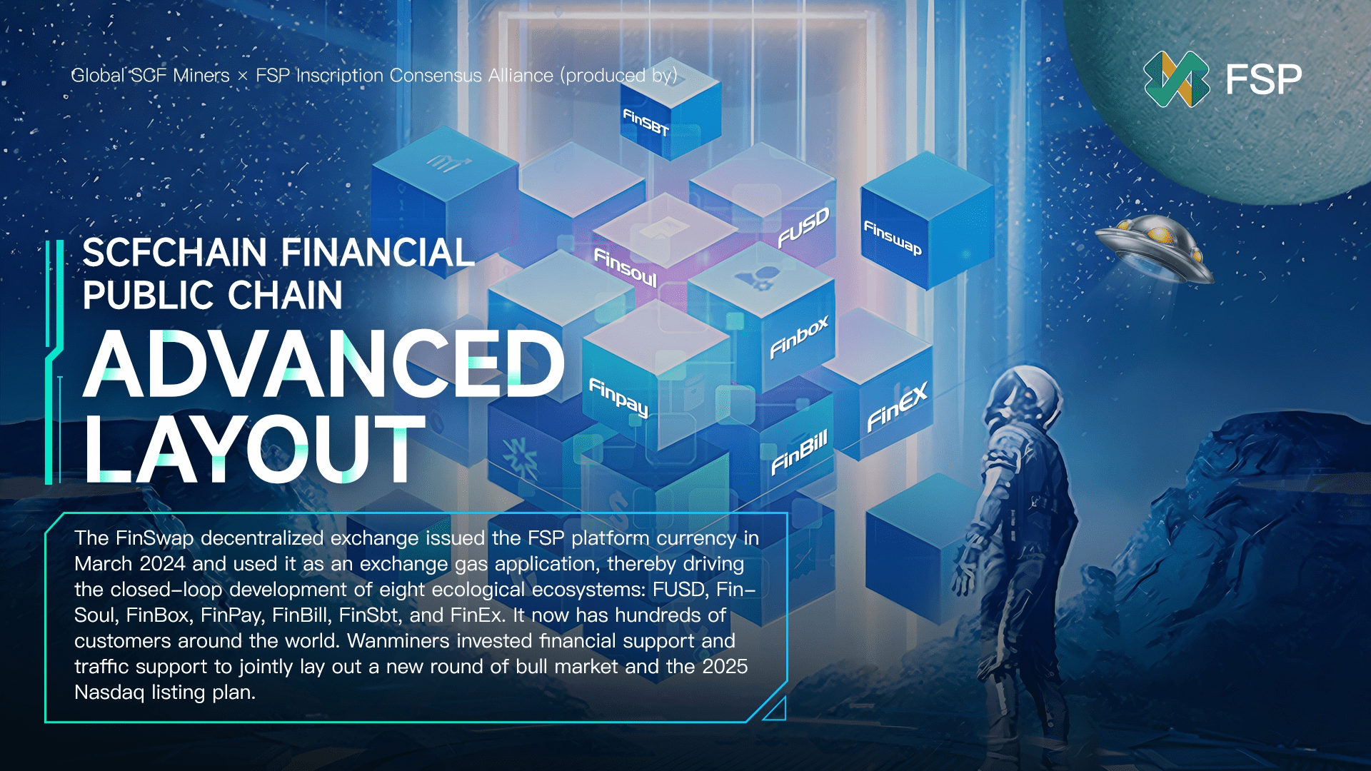 Bursa descentralizată FinSwap a emis moneda platformei FSP în martie 2024 și a folosit-o ca aplicație de schimb de gaze, conducând astfel dezvoltarea în buclă închisă a opt ecosisteme ecologice: FUSD, FinSoul, FinBox, FinPay, FinBill, FinSbt și FinEx It acum are sute de clienți din întreaga lume, Wanminers a investit sprijin financiar și sprijin pentru trafic pentru a stabili împreună o nouă rundă de piață taur și planul de listare Nasdaq 2025.